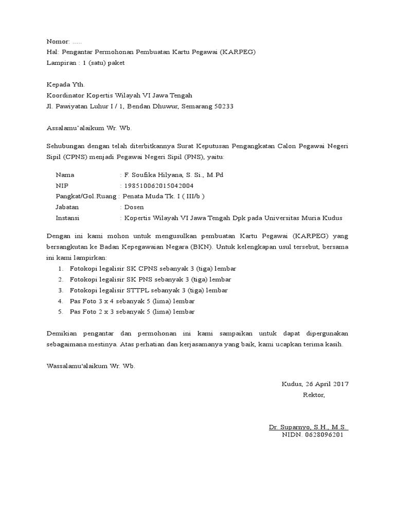 Contoh Surat Pengantar Pembuatan Karpeg : Https Iainkudus Ac Id Maklumat Pdf : Pada dasarnya cara dalam pembuatan surat pengantar tidak jauh berbeda dengan jenis surat resmi lainnya.. Usul pembuatan karpeg 1 (satu) dengan hormat, atas nama : 12 contoh surat permohonan magang. Contoh kata pengantar laporan kunjungan industri. Surat pengantar ini termasuk surat resmi. December 9, 2020 by admin.