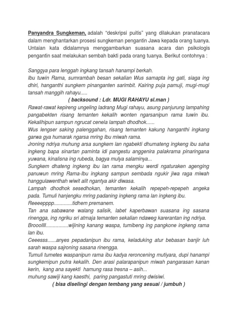 Contoh Naskah Mc Pernikahan Lengkap Bahasa Jawa Indonesia from umbelen.com Kata kata sungkeman pernikahan bahasa jawa singkat. Maybe you would like to learn more about one of these? Check spelling or type a new query. We did not find results for: