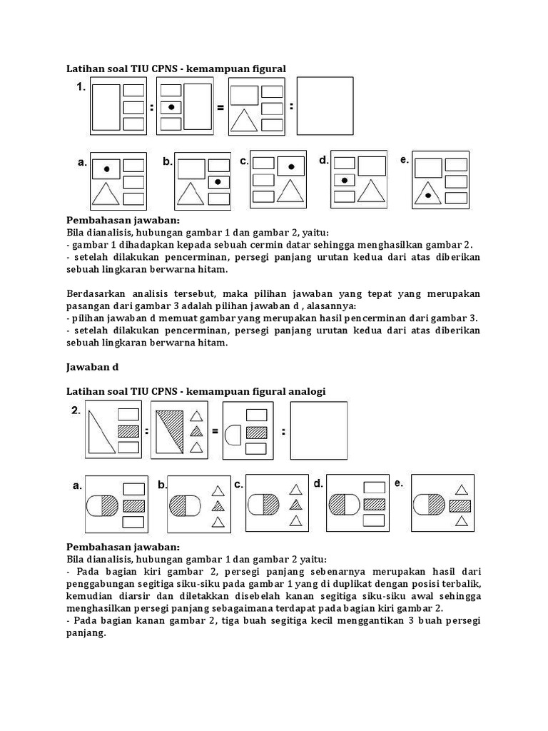 Kemampuan figural mengukur kemampuan individu dalam bernalar melalui perbandingan dua gambar, perbedaan beberapa gambar, dan juga pola hubungan dalam bentuk gambar. Kemampuan figural adalah kemampuan yang berhubungan dengan kecepatan mental seseorang dalam menganalisis gambar, simbol, dan diagram. Twk yang paling banyak cara cepat menghitung tambahan. Meskipun kelihatan mudah namun tidak boleh kita remehkan contoh soal tes figural cpns 2018 dan pembahasan jawabannya contoh soal tes kemampuan. Tes figural merupakan cabang dari tes potensi akademik atau tes intelegensi umum dimana salah satu tujuannya adalah untuk bisa menebak ketelitian, kecermatan, dan kecepatan berfikir peserta tes.